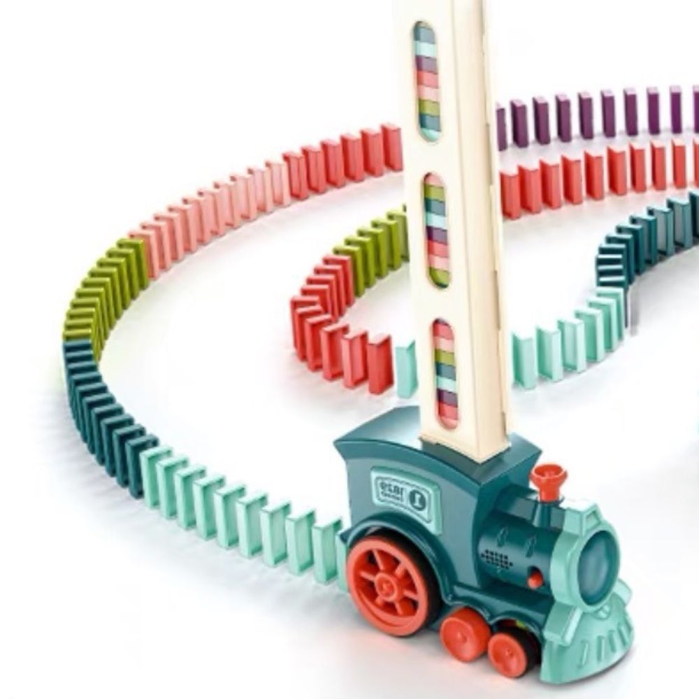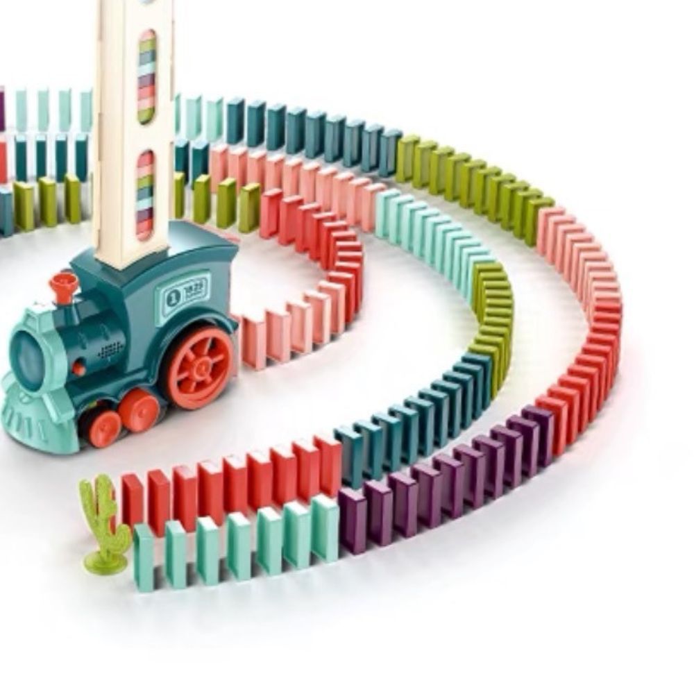 Ten magiczny pociąg samodzielnie układa kolorowe kostki domina, tworząc długie, idealnie równe rzędy. Wystarczy włożyć klocki do podajnika, włączyć lokomotywę i… obserwować, jak wyrusza w trasę pełną zabawy, kolorów i nauki!