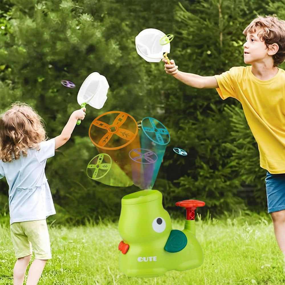 - Naciśnij pompkę… i łap krążki! – teraz czas na ruch! Wystarczy nacisnąć stopą pompkę, a dysk wystrzeli w górę – gotowy do złapania. To moment, który przynosi najwięcej radości i zachęca do aktywności fizycznej.