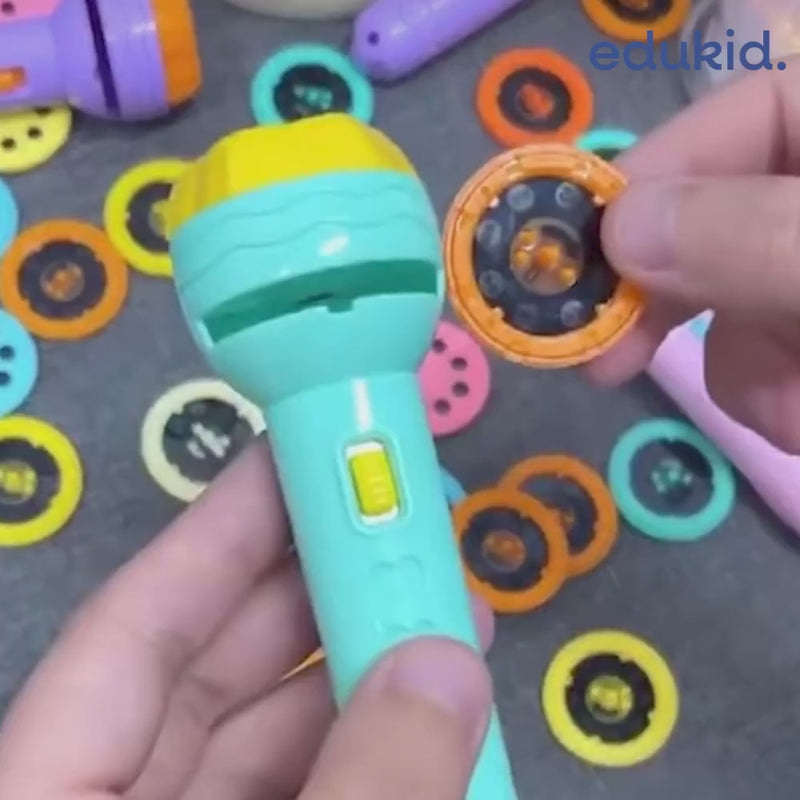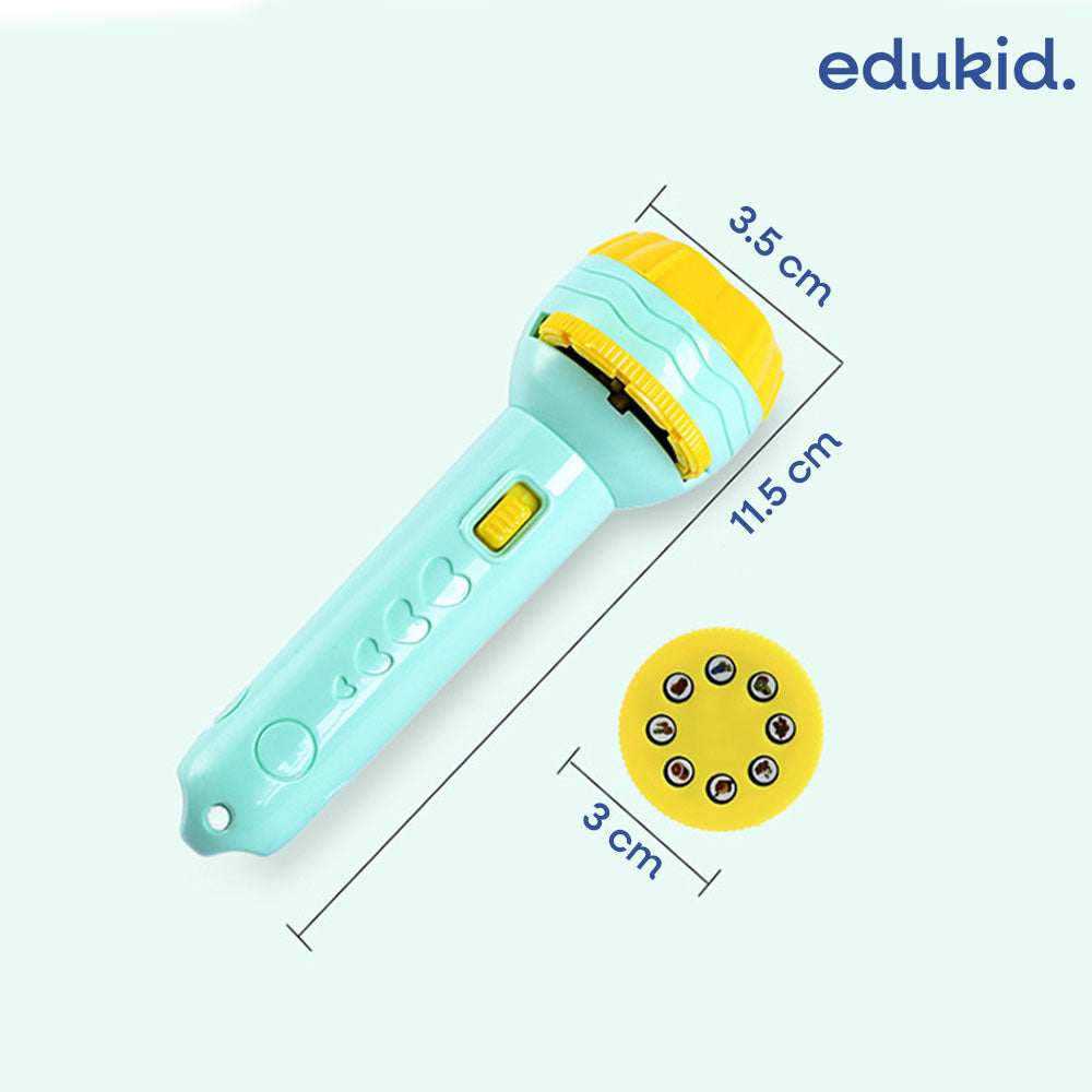 Otwórz przed swoim dzieckiem drzwi do świata wyobraźni dzięki latarce-projektorowi z kolorowymi obrazkami. Ta niezwykła zabawka zamienia zwykły pokój w mini kino, gdzie na ścianie lub suficie pojawiają się barwne slajdy z motywami zwierząt, owoców, pojazdów, dinozaurów, owadów i podwodnego świata.
