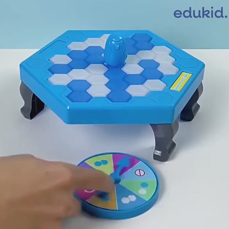 Zręczność, napięcie i mnóstwo śmiechu – to wszystko czeka w grze „Pingwin na Lodzie”! Celem jest utrzymanie pingwina na lodowej planszy jak najdłużej, uderzając w klocki lodu zgodnie z ruchem wskazanym przez tarczę. Ale uwaga – zły ruch i pingwin wpada do dziury!