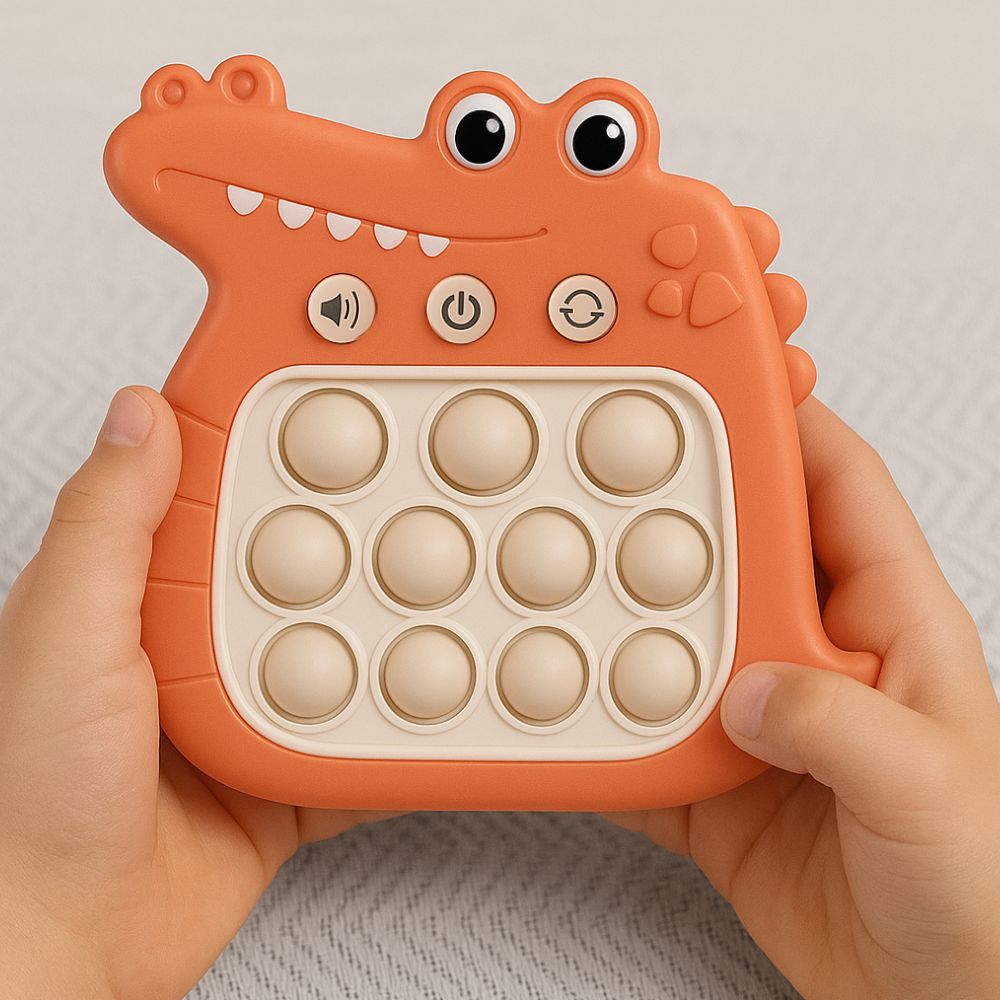 Interaktywny Krokodylek to zabawka, która zamienia zwykłe kliknięcia w emocjonującą przygodę. Wystarczy obserwować świecące bąbelki i jak najszybciej je klikać! Zabawa zaczyna się od prostych wyzwań, ale z każdym kolejnym poziomem tempo rośnie, a zadania stają się trudniejsze.