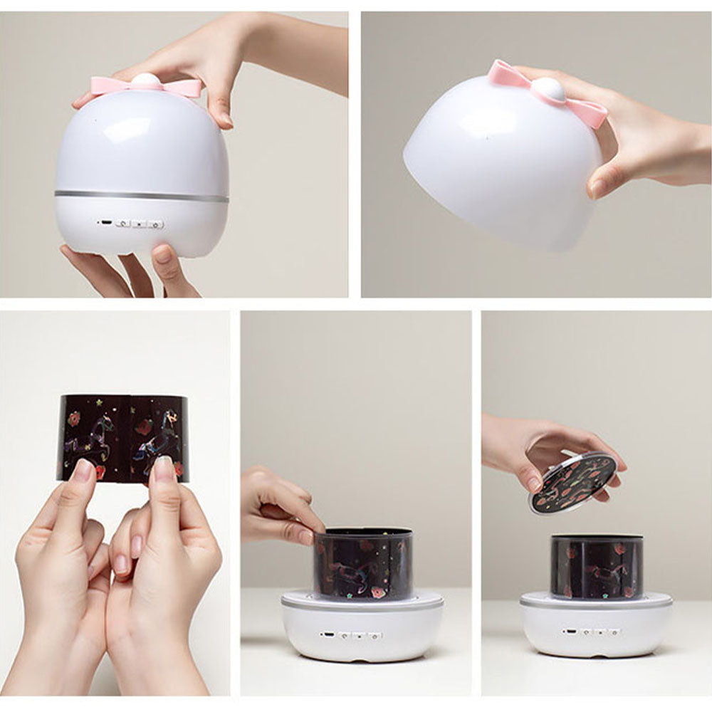 Zwykły pokój w kilka sekund może zmienić się w magiczną galaktykę – wszystko za sprawą tego niezwykłego projektora gwiazd, który jednocześnie pełni funkcję delikatnej lampki nocnej. Po jego włączeniu ściany i sufit rozświetlają się tysiącami maleńkich światełek, tworząc niepowtarzalny klimat pełen gwiazd, planet i... nie tylko! W zestawie znajdują się także wzory przedstawiające urocze zwierzątka, konstelacje oraz inne bajkowe kształty, które pobudzają wyobraźnię i wprowadzają atmosferę spokoju oraz zachwytu.