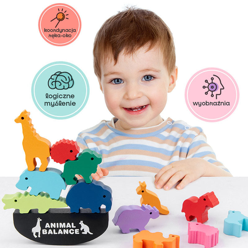 Zabawka zwierzaki balansowanie to kolorowa gra zręcznościowa, która rozwija u dzieci umiejętność koncentracji, cierpliwość i koordynację ręka-oko. Zestaw składa się z kolorowych drewnianych figurek zwierząt oraz podstawy w kształcie półkola, która służy jako niestabilna platforma balansująca. Celem gry jest układanie zwierzątek na podstawie w taki sposób, aby cała konstrukcja nie przewróciła się.